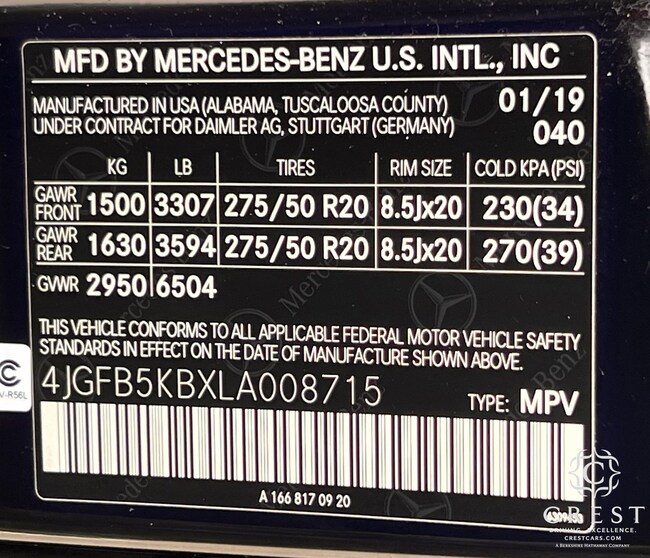 - VIN : 4JGFB5KBXLA008715