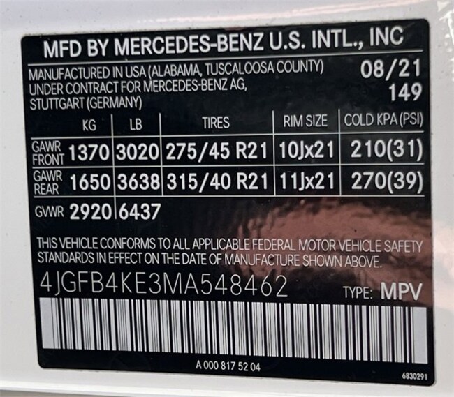 - VIN : 4JGFB4KE3MA548462