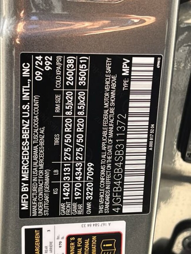 - VIN : 4JGFB4GB4SB311372