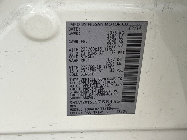 - VIN : 5N1AT2MT5EC786455
