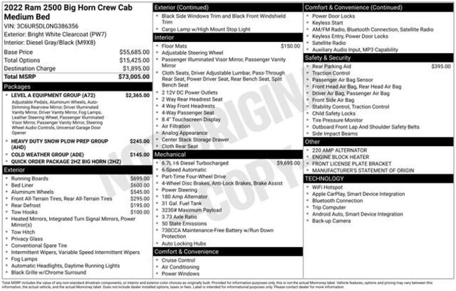 - Engine : 6.7L Cummins I-6 diesel direct injection, VVT intercooled turbo, diesel, engine with 370HP Automatic 4WD